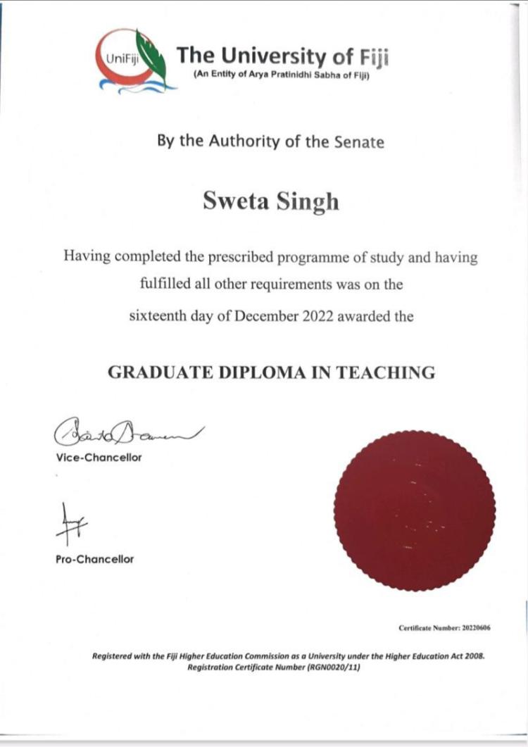 The University of Fiji is legally recognized and/or institutionally accredited by: Ministry of Education, Heritage and Arts of the Republic of Fiji